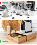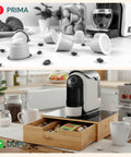 Ottimizza lo spazio e dona un tocco di stile naturale alla tua cucina con il Cassetto Porta Cialde e Capsule in Bambù, un organizzatore di capsule e cialde con ripiano in vetro con sfondo in marmo bianco o in maioliche di Sorrento e design compatto. Perfetto per conservare fino a 56 capsule e 20 cialde in un'unica soluzione elegante e pratica, sia in casa che in ufficio.