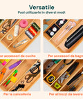 - Materiale di Qualità: Realizzato in bamboo, materiale ecologico e resistente, per una durata superiore e un aspetto naturale.