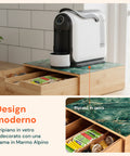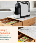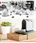 Questo cassetto porta capsule e cialde in bamboo è pensato per chi desidera unire praticità e design ecologico. Con una capacità di carico di 4,5 kg, può supportare tutte le capsule e cialde di cui hai bisogno per affrontare la giornata, organizzate e pronte all’uso. Il ripiano aggiunge un tocco di eleganza, sia che tu scelga la versione con ripiano in vetro con sfondo in marmo bianco,sia che tu preferisca quella in ceramica di Sorrento . Sia che lo posizioni in cucina o in ufficio, questo porta capsule e cialde in bambù valorizzerà lo spazio, rendendolo accogliente e funzionale.