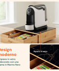 Scegli il Cassetto Porta Capsule e Cialde In Bambù Con Ripiano in Vetro per avere una postazione caffè ordinata e curata: apri il cassetto, scegli la tua capsula preferita e goditi il momento di pausa perfetto, con tutto a portata di mano.