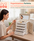 Portagioie con Specchio e 4 Cassetti – Grande Capacità e Design Elegante