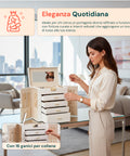 - Scomparti regolabili e modulari: adatti per anelli, bracciali, orologi e orecchini.