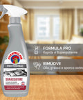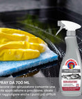 - Modalità d’uso: spruzzare sulla superficie, lasciare agire pochi secondi, quindi risciacquare con un panno umido. Per sporco ostinato, ripetere l’applicazione.