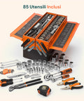 Valigetta Porta Attrezzi in Metallo con 5 Scomparti Pieghevoli – Set Completo da 85 Pezzi