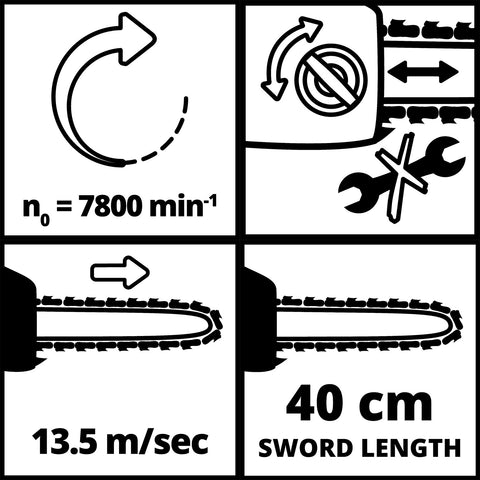 La macchina è dotata di una catena Oregon di alta qualità, di una barra da 40 cm e di un motore da 2000 W. La velocità della catena può essere regolata in modo continuo, per adattarla al tipo di lavoro da svolgere.