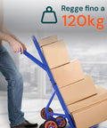 Questo carrello per scale è progettato per facilitare il trasporto di carichi fino a 120 kg su superfici irregolari o rampe. Realizzato in acciaio verniciato, unisce resistenza e funzionalità, rendendolo ideale per utilizzi domestici e professionali