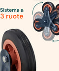 Supporto rotante: Sistema a 6 ruote rigide progettato per facilitare il movimento su scale e superfici