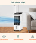 - Rinfrescatore d’aria 2 in 1: Climatizzatore e umidificatore per un comfort completo.