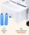 - Serbatoio da 3 litri rimovibile: Facile da riempire e pulire, con 2 panetti ghiaccio inclusi per un effetto refrigerante potenziato.