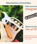 - Meccanismo a cricchetto: Riduce lo sforzo del 70%, ideale per rami fino a 20 mm di diametro.