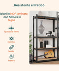- Ripiani in MDF: Spessore 4 mm con finitura laminata effetto legno, resistenti ed eleganti, adatti a molteplici contesti.