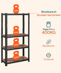 Scaffale 4 Ripiani in Acciaio e MDF Laminato Effetto Legno Portata Totale 400 kg