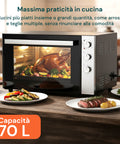 Scegli il Forno Elettrico 2500W da 70 Litri per portare nella tua cucina potenza, precisione e spazio, e affrontare ogni ricetta con risultati da vero chef!