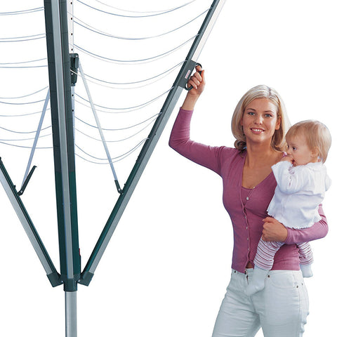 Il migliore stendibiancheria da giardino sul mercato. Con una superficie di asciugatura di 60 m, può ospitare fino a 6 carichi di bucato, garantendo un'asciugatura rapida e uniforme.