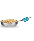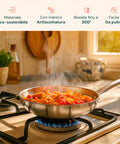 La padella svasata alta in alluminio riciclato è lo strumento ideale per cuochi esigenti e amanti della cucina sostenibile. Realizzata con alluminio 100% riciclato, offre un'elevata conducibilità termica, riducendo i tempi di cottura e garantendo una distribuzione uniforme del calore. Il manico in acciaio inox robusto e resistente consente un utilizzo sicuro anche in forno, rendendo questa padella perfetta per preparazioni versatili, dai soffritti alle cotture al forno. Il design svasato e il bordo alto la rendono ideale anche per piatti più elaborati e abbondanti, senza rischio di fuoriuscite.