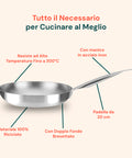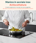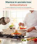 - Manico: Acciaio inox, resistente al calore e utilizzabile in forno