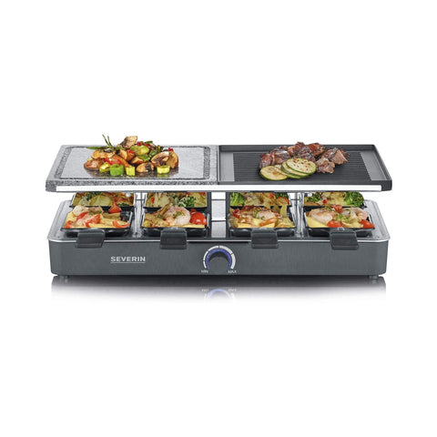 Goditi una serata in compagnia con questo pratico grill per raclette! La piastra in pietra naturale mantiene perfettamente la temperatura, mentre la piastra grill antiaderente permette di grigliare in modo sano e senza grassi. Con 8 padelle antiaderenti in dotazione, potrai preparare deliziosi piatti per tutti i tuoi ospiti.