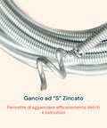 - Gancio ad “S” zincato: Per rimuovere efficacemente otturazioni e residui.