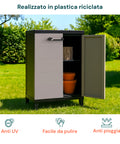- Struttura compatta a due ante: Le ante robuste con finitura effetto legno proteggono il contenuto da polvere, umidità e agenti esterni, garantendo durata e ordine.