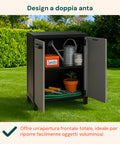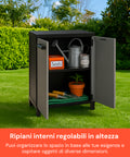 - Ripiano interno incluso: Il ripiano centrale permette di organizzare al meglio gli spazi, tenendo separati utensili, prodotti per la casa o accessori da giardinaggio.