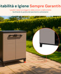 - Piedini rialzati: I quattro piedini sollevano la struttura dal terreno, proteggendola da eventuali ristagni d'acqua e facilitando la pulizia sottostante.