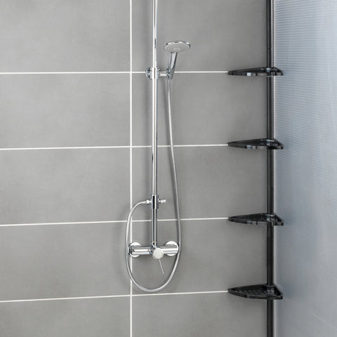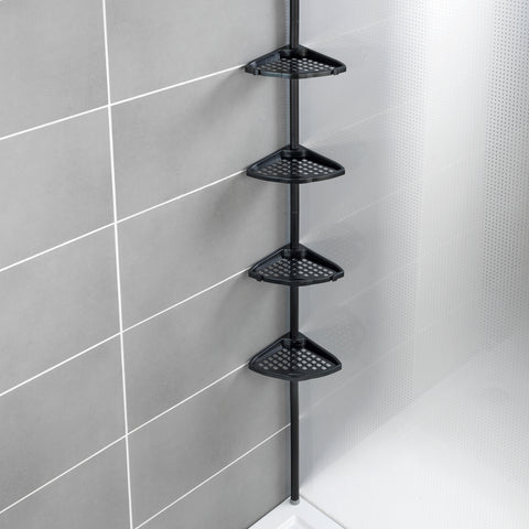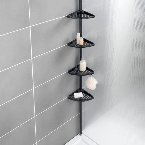 Ottima soluzione per sfruttare al meglio lo spazio angolare della tua doccia. La mensola è regolabile in altezza, in modo da adattarsi a qualsiasi tipo di angolo. Realizzata in metallo resistente e durevole, è disponibile in color nero.