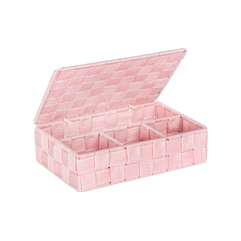 Organizza la tua casa con questo pratico cestino Adria di Wenko! Realizzato in polipropilene resistente, è perfetto per riporre accessori per la casa, cosmetici, giocattoli o qualsiasi altro oggetto. Il coperchio incernierato lo rende facile da aprire e chiudere, e la forma rettangolare lo rende ideale per qualsiasi spazio.