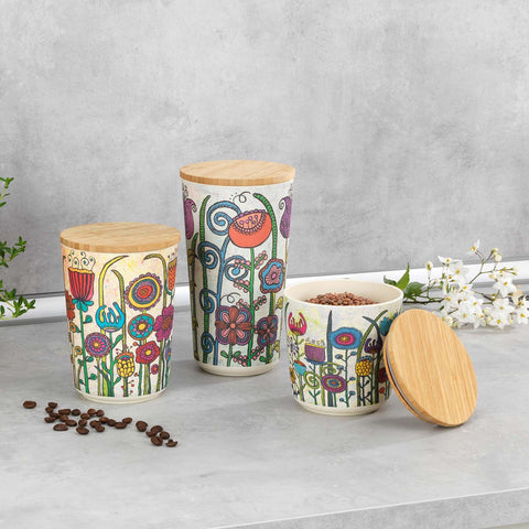 Questo elegante contenitore in bambù con motivi floreali è perfetto per conservare alimenti, spezie o altri oggetti. La sua forma e le sue dimensioni lo rendono ideale anche come elemento decorativo.