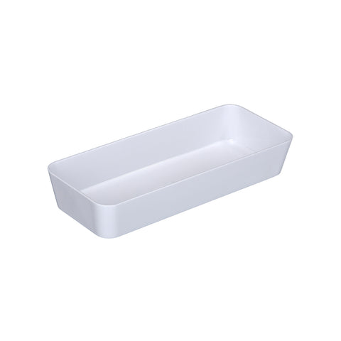 Questo pratico contenitore in plastica è perfetto per riporre tutti gli accessori da bagno in modo ordinato e accessibile. La sua forma sottile lo rende ideale da posizionare anche in spazi ristretti, come sotto il lavabo o sul piano del bidet.