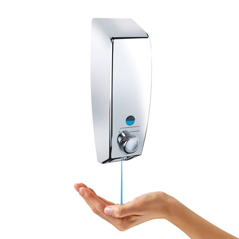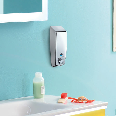 Questo elegante dispenser per sapone a parete è perfetto per il tuo bagno. Realizzato in resistente plastica cromata, è facile da installare e da pulire. La sua capacità di 450 ml assicura un'ampia autonomia.