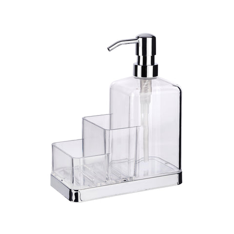 Mantieni la tua cucina pulita e ordinata con il Dispenser per Sapone e porta Spugne Clarido di Wenko. Questo pratico accessorio è realizzato in materiale plastico trasparente, che permette di vedere facilmente il livello del sapone e della spugna. Il dispenser è dotato di un sistema di chiusura a scatto, che lo rende sicuro e facile da usare. Il porta spugne è dotato di un foro di drenaggio, che evita la formazione di muffe e batteri.