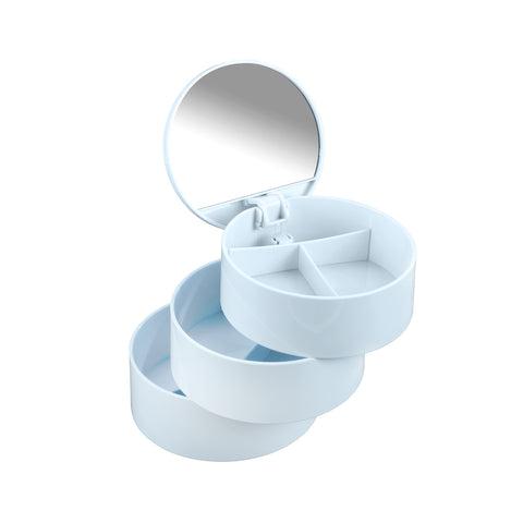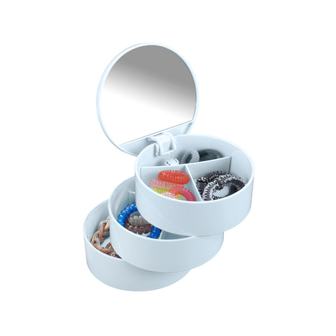 Organizza i tuoi cosmetici in modo pratico e stiloso con l'Organizer per Cosmetici Tower Bianco di Wenko. Questo organizer, realizzato in resistente plastica bianca, è dotato di tre ripiani rotanti che consentono di accedere facilmente ai tuoi prodotti preferiti. Il pratico specchio integrato ti permette di truccarti comodamente senza dover cercare il tuo specchio da tavolo.