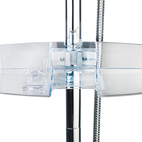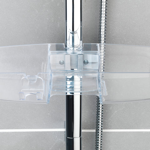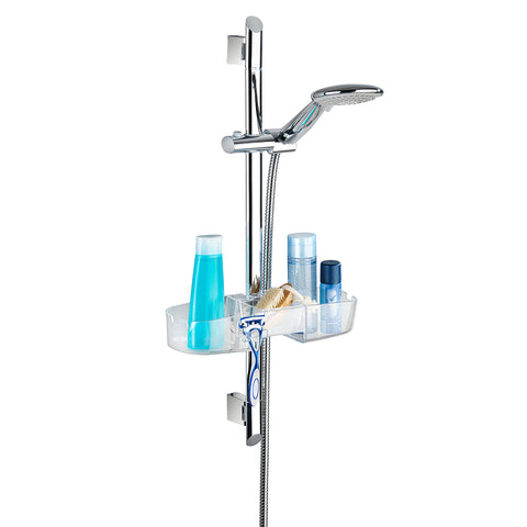 Organizza la tua doccia con questo pratico portaoggetti in plastica trasparente. Con un solo ripiano, offre spazio sufficiente per shampoo, sapone, rasoio e altri accessori. Si aggancia facilmente alla barra della doccia, senza bisogno di forare o avvitare.