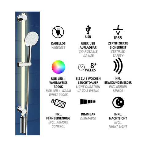 Rendi la tua doccia ancora più rilassante e piacevole con il Set Barra da Doccia a LED 80cm di WENKO. Questa innovativa barra da doccia è dotata di illuminazione LED integrata, che crea un'atmosfera rilassante e accogliente. L'illuminazione è regolabile in 12 colori, tra cui bianco caldo e RGB. La barra da doccia è realizzata in materiale ABS di alta qualità, facile da pulire e resistente all'acqua. È inoltre dotata di un sistema di montaggio rapido e semplice. Con il Set Barra da Doccia a LED 80cm di WENKO, la tua doccia diventerà un momento di puro benessere.