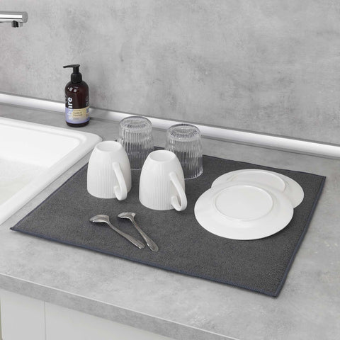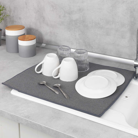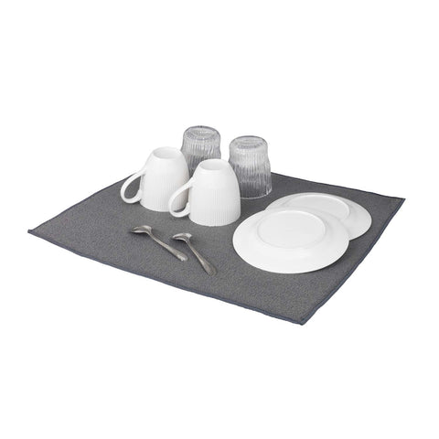 Proteggi il tuo piano di lavoro e la tua delicata lavastoviglie con questo tappetino scolastoviglie in microfibra Miko grigio 47x40cm.