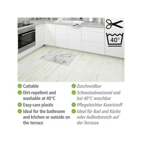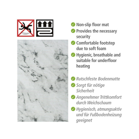Caratteristiche: * Materiale: poliuretano * Dimensioni: 65x200 cm * Colore: bianco * Antiscivolo * Lavabile in lavatrice a 40°C